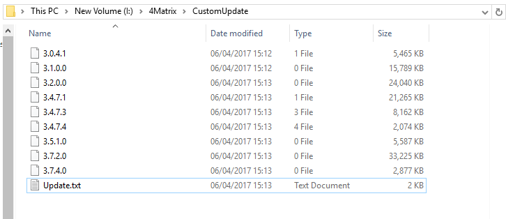 When the 4Matrix client application launches it checks the version number in the Update.txt file in your custom folder. If it detects a higher version than is currently in use in the .txt file then the update process will begin.